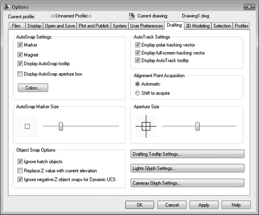 Шкала Aperture Size (Размер прицела) управляет размером прицела при включенном флажке Display AutoSnap aperture box (Показывать прицел).