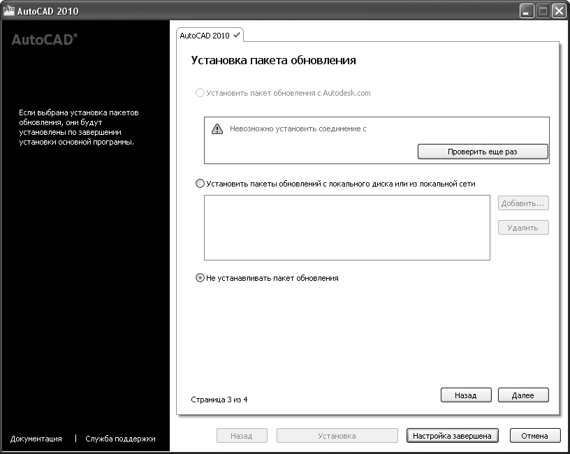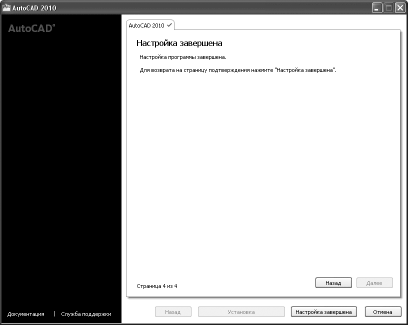 Вы можете установить флажок напротив опции Ознакомительные сведения по AutoCAD 2010 (View the AutoCAD 2010 Readme), чтобы сразу после закрытия мастера установки перейти к изучению справки по AutoCAD.