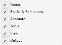 5. Выберите из контекстного меню ленты пункт Panels (Панели). Откроется соответствующее подменю, зависящее от вкладки и содержащее список панелей.
