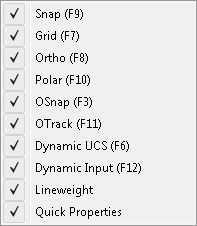 Вы можете видеть список из описанных выше команд, рядом с каждой из которых расположен флажок, показывающий, выведена ли соответствующая кнопка на строку состояния.