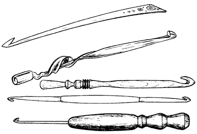 Тонкими металлическими крючками (№ 0,5–1,5) вяжут ажурные легкие изделия (кружева, салфетки).
