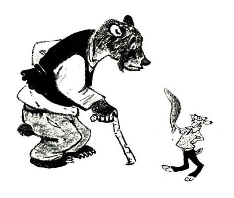 —А мне отрывать нечего. У меня хвост пуговкой! — ответил Медведь.— Лучше Зайца попрошу, чтобы он на деревенскую Шавку страху нагнал. Тревожит она меня, лает по ночам на деревне — спать мне не дает.
