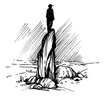 Аж раптом сталося щось дивне й справді несподіване. Ми вже підвелися, вирішивши припинити марну погоню. Місяць був праворуч від нас; нерівна вершина гранітного стовпа чітко вимальовувалася на тлі його срібного диска. І на цьому стовпі я побачив людську фігуру, яка стояла нерухомо, немов статуя з чорного дерева. Не подумайте, Холмсе, що це була галюцинація. Я, як ніколи, міг покластися на свій зір!