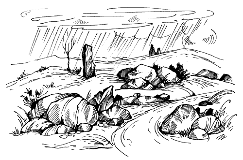 Наскільки мені вдалося роздивитися, це був високий, худий чоловік. Він стояв, трохи розставивши ноги, схрестивши руки на грудях, опустивши голову, і, немов розмірковуючи, дивився на царство торфу й граніту, що пролягало перед ним. Ось таким і уявляється мені дух тутешніх боліт! Це був не каторжник. Він стояв далеко від місця, де той зник, та й на зріст він був вищим. Скрикнувши від несподіванки, я повернувся до баронета і схопив його за руку. Секунди, що знадобилася мені на це, було досить — людина зникла. Гостра вершина гранітного стовпа врізалася у місячний диск, але нерухомої, мовчазної фігури на ній уже не було.