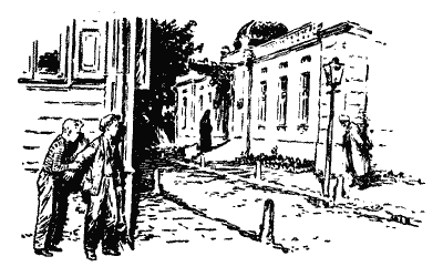 Притиснувши палець до губів, він подав хлопчикам знак не рухатись, а сам, пригинаючись до землі, поповзом почав наближатися туди, звідки чулися незрозумілі звуки. Але за ним поповз Генка, а за Генкою — Жердяй. Цього разу він знову побоявся лишатись один. Вони проповзли кроків двісті. Удари лунали все ближче й ближче. Тепер стало зрозуміло, що десь копають і відкидають землю. Між деревами промайнула смужка місячного світла. Мишко обережно розсунув гілля…
