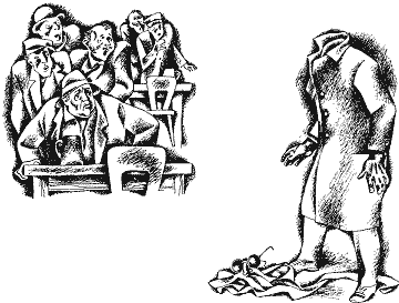 Ззаду сталося якесь замішання, і промовець спинився, даючи пройти невеличкому гуртові людей, що впевнено прямував до будинку. На чолі гурту виступав містер Гол, дуже червоний і рішучий, далі містер Боббі Джеферс, місцевий полісмен, і, нарешті, обережний містер Воджерс. Озброєні вони були ордером на арешт.