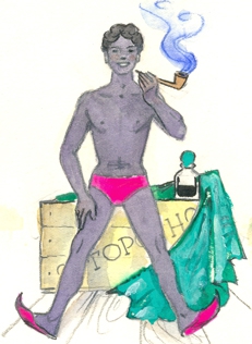 Негърът се смееше високо, изпружил дълги голи крака в червени чехли, прилични на гигантски червени пиперки.