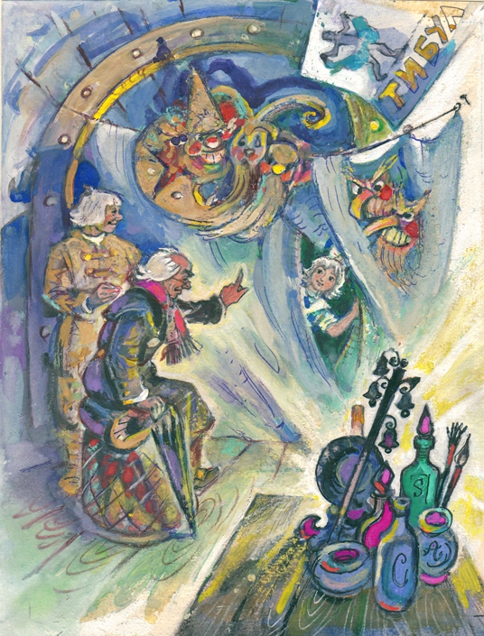Куклата излезе от преградката. Лампата ярко я осветяваше. Тя се усмихваше, навела настрана чорлавата си главица. Нейните коси имаха такъв цвят, какъвто имат перата на мъничките сиви птички.