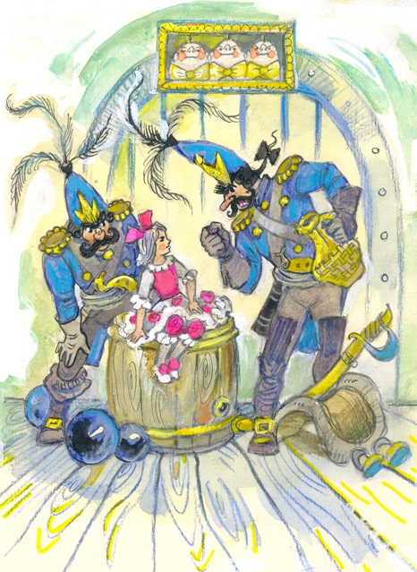 Струваше й се достатъчно удобно да седи на бурето. Наистина роклята й от такова седене се изцапваше, но тя и без това вече беше изгубила предишния си вид: изподрали я бяха клоните, изпогорили я бяха факлите, изпомачкали я бяха гвардейците, опръскали я бяха сиропите.