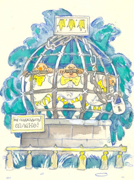 Синеокият гвардеец извади момичето от шкафа. Той беше същият оня синеок гвардеец, който беше откраднал куклата на наследника Тутти от картонената кутия на учителя по танци Раздватрис. Той беше я докарал в двореца, той беше повалил с пестник държавния канцлер и гвардееца, който мъкнеше клетата Суок. Той беше скрил Суок в шкафа на часовника и я беше заменил с мъртвата, парцалива кукла. Спомняте ли си как в Залата на съда той тресеше това чучело за раменете и как го предаде на зверовете да го разкъсат?