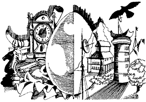 Ще рік тому на околиці Севендайєлса стояла маленька закіптюжена крамничка з вивіскою, де вибляклими жовтими літерами було написано: “К. Кейв, природодослідник і продавець раритетів”. Вітрина крамнички була захаращена розмаїтими диковинками. Чого тут тільки не було: кілька слонячих бивнів, неповний набір шахових фігур, чотки, зброя, повна скринька скляних очей, два тигрячі черепи та один людський, кілька поїдених міллю мавпячих опудал (одне з лампою в руках), старовинна шафка, два-три засиджених мухами страусячих яйця, трохи рибальського начиння і неймовірно брудний порожній акваріум. На той час, до якого відноситься наша оповідь, там був іще чималий шмат кришталю, виточений у формі яйця й відшліфований до блиску. На це кришталеве яйце якраз і дивилися двоє, що стояли надворі перед вітриною: високий худорлявий пастор і смаглявий чорнобородий молодик у костюмі скромного крою. Смаглявий молодик щось говорив, жваво жестикулюючи; здавалося, він умовляє свого супутника придбати цю річ.