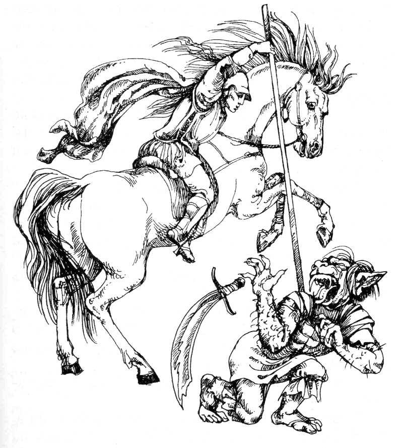 Горшнак розпластався на землі, прикривши гобітів собою, і витяг шаблю — розправитися з полоненими, не дати їм врятуватись. Це його й згубило: шабля дзенькнула, на клинку відбився виблиск ближнього багаття, і тієї ж самої миті в темряві проспівала стріла; чи то лучник добре поцілив, чи сама доля направила його руку, але стріла прошила праве плече Горшнака. Орк заскиглив, випустив шаблю, скочив — і одразу ж звалився, пробитий списом. Дикий, верескливий зойк вирвався з його горла, він смикнувся й затих.