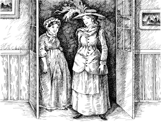 Вона підіймає кошика і стомлено рушає з ним до свого помешкання. Це — невеличка кімнатка з вицвілими шпалерами, що де-не-де повідставали від вогкості. До стіни приколоте фото якогось актора та ескізи суконь, про які дівчина може лише мріяти. У вікні висить порожня пташина клітка — на згадку про її покійного квартиранта. Замість розбитої шибки вікно затулене картоном.
