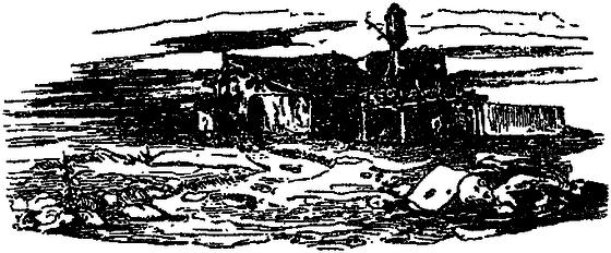 Для прохолоди стіл поставили коло дверей корчми, і хазяїн подав йому порцію погано вимоченої та ще гірше звареної тріски і шматок хліба, такого чорного та цвілого, як його зброя.