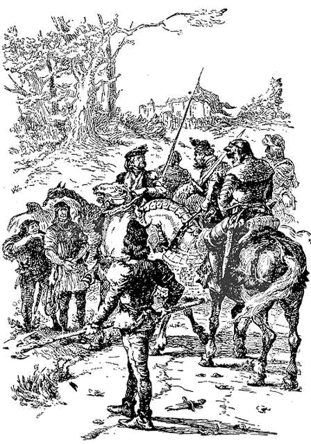 — Пане, ви завдали великої образи його милості військовому прево, втрутившись у справи королівського правосуддя, здійснювати яке — його законний обов'язок. Дуже несправедливо ви вчинили і щодо мене, бо сам закон віддав до моїх рук злочинця. Крім того, ви робите досить погану послугу і юнакові. Подумайте тільки: з п'ятдесятьох можливих для нього нагод бути повішеним він ніколи, мабуть, не буде так добре підготований до смерті, як то було перед вашим нерозважним втручанням.