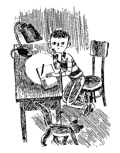 Вдома я не відразу став думати. Спершу я погуляв у дворі з хлопцями, потім пообідав, потім ще трішечки погуляв, потім повечеряв і ще капелинку погуляв. Тоді повернувся додому і взявся писати щоденник.