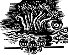 Він уже й сам бачив. Над машиною металася, то розсипаючись урізнобіч, то майже обліплюючи оглядовий купол, зграйка літаючих істот. “Обличчя” кожної з них являло собою одне суцільне око під складчатою шапочкою верхньої повіки. Кожен літун то раптом надувався слизьким м’ячем, то, різко викинувши з себе повітря, робився худим і струнким. Пролітав кілька метрів, а потому розпускав білясту квітку тонких перетинок, поволі планеруючи і надуваючись для нового стрибка.