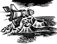 …Коли могутній корабель Віоли, яскраво-червоний, з емблемами Рятувальної Служби Флоту, підчепивши гравітаційними присосками, поволік угору з кратера сплющений корпус “Матадора”, внизу знявся цілий вихор. Немов буре листя кружляло навколо обгорілого велетня.