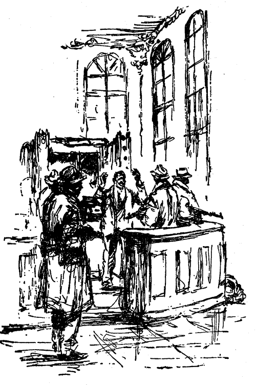 Четверо проходять через вестибюль і опиняються у величезному операційному залі, де близько ста відвідувачів займаються різними грошовими операціями.