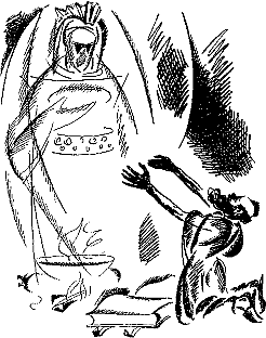 Гарт уже стояв біля дверей, і у відблисках вогнів з яскраво освітленої церкви можна було розгледіти його подряпані скривавлені руки, що вчепилися в одвірок. Зовсім поряд з темряви випірнуло обличчя Ітина, і Гарт відчув, як ніжні руки з численними пальцями й гострими пазурами вчепились за його одежу.