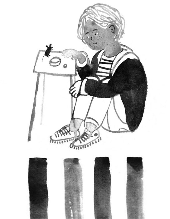 Но бабушка уже занялась мытьем посуды, и к Никите была обращена ее спина в рыжей майке и седой затылок с пальмой. Журчала вода, звенели тарелки, молчала бабушка. Хорошо, что у Никиты есть мышонок, а то не миновать ему тоскливого настроения. Никита слез со стула, сел на пол перед табуреткой и приблизил нос к жующему гречку мышонку.