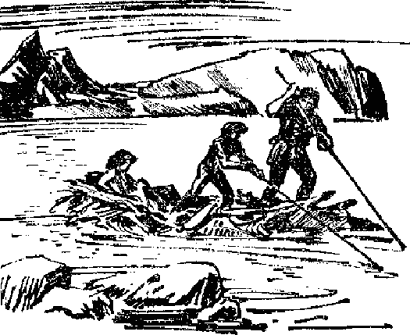 Лишь к вечеру Дик отыскал два поваленных дерева, но лежали они очень неудобно, в топи, и неясно было, как их вытащить и связать. Казик сообразил, что если обрезать корни, которые держали их прибрежный плавучий островок, его можно сплавить к этим деревьям. А потом они притянули деревья к островку, и получился корабль — сырой, ненадежный, почти неуправляемый, но зато он плавал.