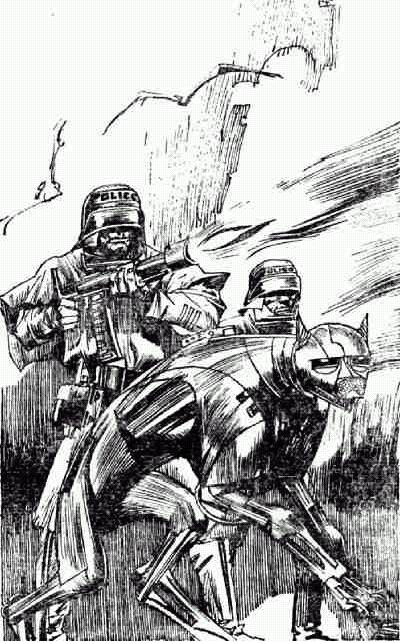 – Привыкли? Эти-то безмозглые твари? Ручаюсь, многие из них вас и в глаза-то никогда не видели! И тем не менее ни одна крыса на вас не бросилась. Любопытно, любопытно… Эй, ребята, пошли вперед, но осторожней! Сержант Поттер, включите биоактивизаторы «псов» на максимум. Если у каждой развалюхи эти твари будут задерживать нас по полчаса, мы не кончим работу и за год…