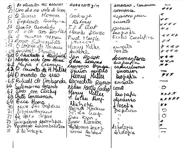 Пауло читает вперемешку Т. С. Элиота, Генри Миллера, Эльзу Соарес. Читает и оценивает прочитанное звездочками