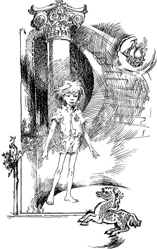 Тенька сел на корточки. Маленький конь был не из его Народца. Не Тенькин, а чей-то. Но он был славный. Тенька пальцем провел по спинке. Твердая, гладкая. То ли пластмасса, то ли толстый слой бумаги, который называется папье-маше.