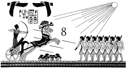 Шло время, а такой случай все никак не представлялся. И вот однажды нас собрали во дворе храма, и номарх обратился к нам с речью. Себекаи стоял на помосте, окруженный командирами и старшими жрецами храма. Вид у него был радостный. Он громогласно объявил, что прибыл гонец от его величества царя Дидумеса, восседающего на троне Гора в Городе Скипетра. Нужно сказать, что в этом году разлив запаздывал. И вот, зная, что большая часть армии этого презренного выходца из Хару, этого ненавидимого всеми царя-пастуха занята разорением северных областей Черной Земли, царь решил не дожидаться, когда Нил выйдет из берегов. Сильная, хорошо подготовленная армия двинулась на север под руководством сына визиря по имени Небкауре. Себекаи с восторгом отозвался о командующем армии, он заявил, что это лучший военачальник его величества. И добавил, что нам приказано поторопиться с подготовкой, потому что как только армия Небкауре прибудет в Нен-Несут, наш отряд вольется в нее и все египетское войско двинется на Мемфис, чтобы «очистить наши земли от крыс, пришедших из страны Хару». Правитель Мемфиса, по словам Себекаи, располагал «жалким маленьким отрядом, одержать победу над которым не составит труда». Он призвал нас храбро сражаться, чтобы прогнать захватчика, «уничтожить в зародыше эту гиксосскую напасть».