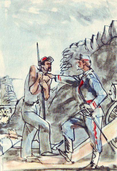 Коммунары умолкли. Канонир хмуро отступил. Грассе, опустив голову, стегал хлыстом по лафету.