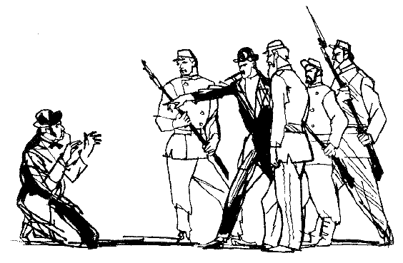 Они нагнали провокатора на баррикаде улицы Тарани. Он стоял, плотно окруженный коммунарами, и рассказывал об измене Домбровского: «Этот паршивый поляк, оказывается, сбежал, продавшись версальцам. Это он за пятьсот тысяч франков открыл городские ворота и впустил версальцев в Париж».