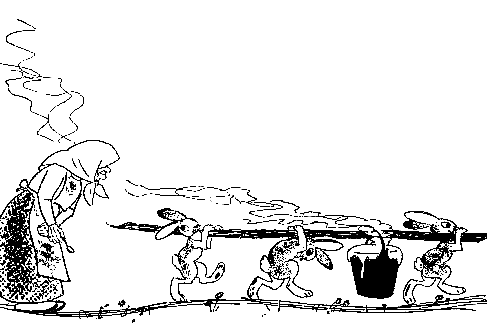 – Пересолёно! Не поесть мне из-за вас, глупые зайцы! у А зайцы рассмеялись и пустились наутёк, только лапки замелькали.