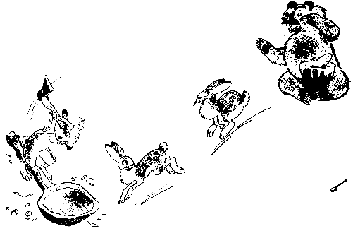 Вскочил Медведь, замотал головой и чихнул восемь раз подряд. Потом он побрёл обратно в лес - топ, топ, топ… Говорят, что теперь он всё делает сам.