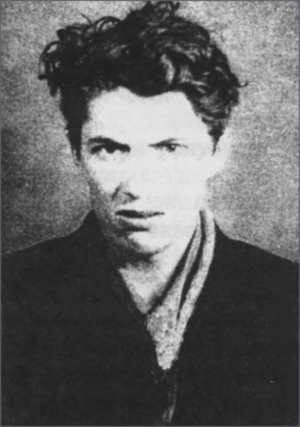 Петр смущенно почесал затылок и поспешно куда-то ретировался. Не прошло и минуты, как в кабинет вполз маленький тщедушный юноша с огромным кривым носом. Вытянутая головка выстрижена «под нуль». На теле — нижняя рубаха цвета смешанной акварели и такой же цены рваные кальсоны.