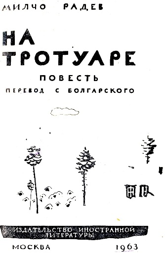 Краткие потому, что Милчо Радев еще молод. И по возрасту и как писатель. Он автор нескольких небольших рассказов и очерков, публиковавшихся в болгарских периодических изданиях. «На тротуаре» — не просто его первое произведение, переведенное на другой язык. Это вообще его первое крупное произведение. А по профессии он врач — коллега Евгения, героя повести.