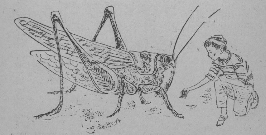 Июньским солнечным днём баба Варя послала Гошу в магазин за хлебом. Он уже подходил к дому, помахивая сеткой с душистой теплой буханкой, как вдруг у самой калитки заметил непонятный предмет. Мальчик подошёл ближе и разглядел красного с ярко- жёлтым брюхом кузнечика. Удивляли не только окраска, но и размеры насекомого: оно было толщиной в руку и полметра в длину.