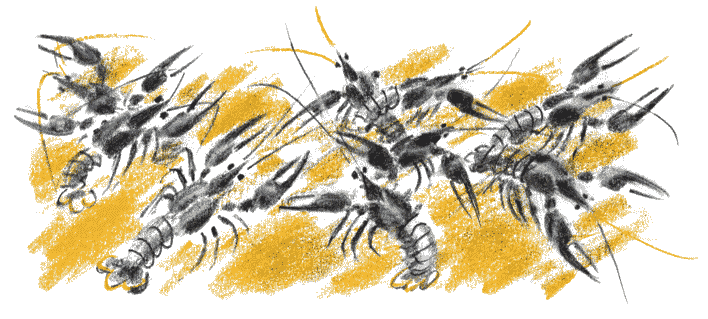 Потапыч понял: в этот раз не увильнуть. А когда приплелся на кухню, замер от восторга. Весь пол покрывала шевелящаяся коричнево-зеленая масса с клешнями и усиками. Рачье войско выбралось из большой кадушки, пока все любовались отцом с шашкой, и собиралось сражаться за свою жизнь.