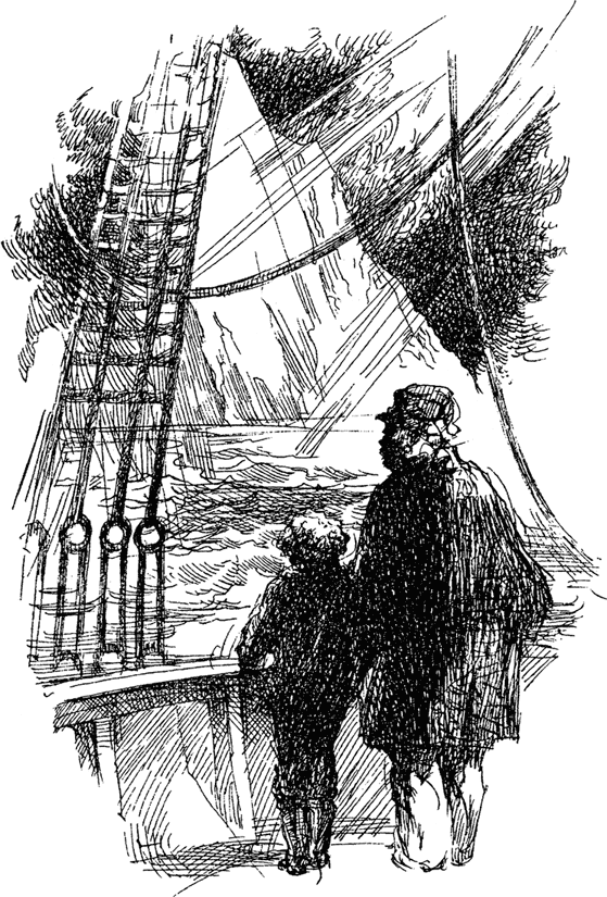 Туча надвинулась на солнце, погасила сказку. Ледяной остров стал белесым и туманным, волны и небо – серыми. Стоило ждать, что подступят прежние вялость и скука. Но… Гриша сжал стеклышко в ладони и ощутил, что скуки больше не будет. Гудел в снастях и парусине бодрый ветер. Славный такой ветер, с зюйд-оста. Совсем нехолодный. Он был какой-то знакомый, слегка напоминал о доме, потому что (хотите – верьте, хотите – нет) в нем ощущался запах, похожий на запах пустых бочек из-под соленой рыбы, которые пирамидами высились на краю речной пристани в городе Турени.
