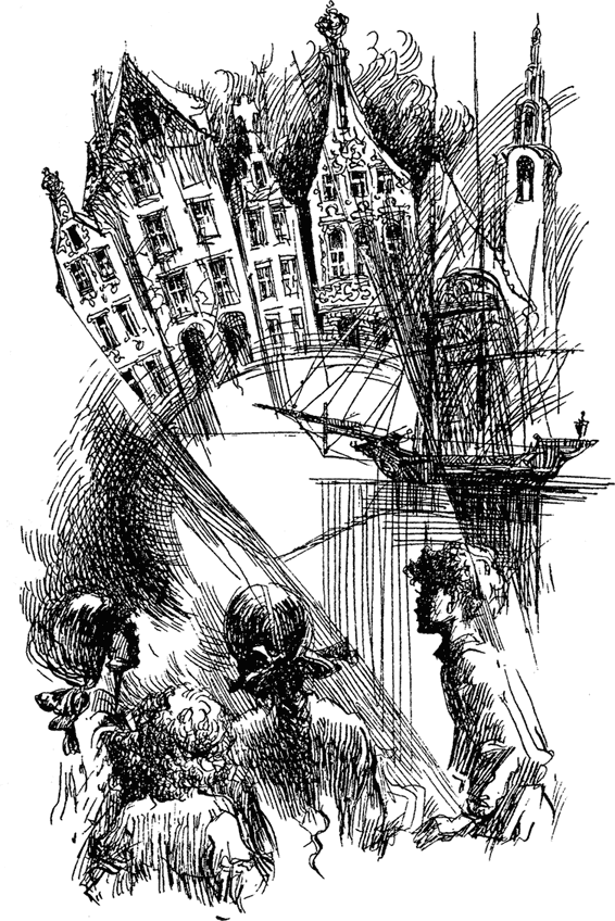 В светлых клубах, как в прозрачном облаке, встало видение города. С острыми крышами, тонкими узорчатыми башнями, флюгерами, колокольнями и мачтами кораблей, что прижимались к высоким каменным причалам. Реяли вымпелы и флаги. Круглый дым висел пред стволом пушки, которая, кажется, только что выпалила в честь прибывшего судна… Все это было в неярких, но теплых полукрасках – оранжевая черепица, желтоватые фестоны парусов, бледное небо с волокнами облаков, серый камень…