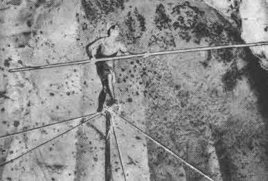 Птицы облюбовали здесь прибрежные пещеры Ниах. Но как достать лакомые гнезда, ведь они находятся на двухсотметровой высоте, под самым сводом? Вот здесь-то и приходят на помощь те диковинные сооружения, которые вы видите на фотографиях. Жители Борнео конструируют их из стволов бамбука, связанных вместе — один из них служит продолжением другого. Сложная система веревок сохраняет их в вертикальном положении. Отважные охотники за гнездами взбираются на эти мачты так же легко и уверенно, как жители островов Океании лазят по гладким стволам кокосовых пальм. Достигнув вершины, охотник берет в руки шест длиною 5–6 метров и, осторожно балансируя на крохотной площадке, нащупывает и отцепляет прилепившиеся к скалам гнезда.