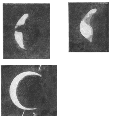 Особенно ясно светлые пятна видны на «рогах» планеты. Вероятно, здесь находятся ее полюса.