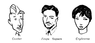 Сидящий впереди загорелый человек лет двадцати восьми, в потертом костюме — это Генри Чармен — мельком оглядывает свою соседку — тоненькую, совсем юную девушку-студентку.