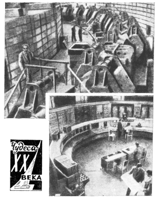 Новый ускоритель рассматривается учеными как рабочая модель будущего гиганта: в Советском Союзе строится сейчас на таком же принципе огромная машина мощностью в 50–70 миллиардов электроновольт.