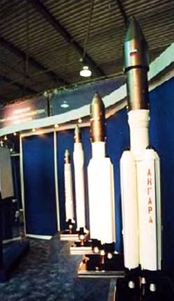 Ракетный комплекс «Ангара» в разных вариантах. Пока на выставке были представлены лишь макеты будущей разработки.