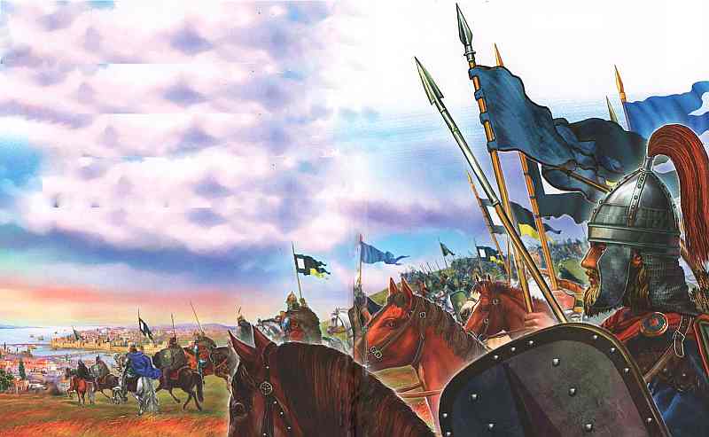 После смерти Константина I его сыновья разделили между собою империю, и междоусобица, на время притушенная единовластием Константина, разгорелась с новой силой. Двое из братьев погибли в гражданских войнах, третий — Констанций II воцарился на Западе и правил до 361 г. В это время империя формально считалась единым государством. Времена она испытывала тяжелые. То в одной провинции, то в другой вспыхивали восстания. Нескончаемые нашествия варваров с Востока подтачивали основы государства. В 378 г. восточно-римский император Валент был разбит под Адрианополем и погиб. Полчища варваров овладели Фракией, Дакией и дошли до стен Константинополя. Это поражение ускорило распад единого государства.
