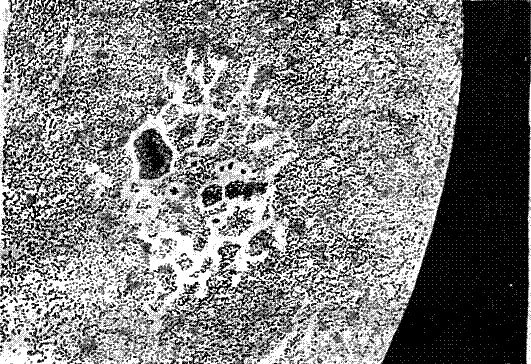 Иногда на каком-нибудь участке Солнца появляется очень много факелов. Они вспыхивают, словно предвещая приближение извержения. Действительно, в этом месте зернышки и хлопья ускоряют свое движение, они быстро расходятся в стороны, словно их разгоняет какой-то вихрь. Темные промежутки увеличиваются, сливаются друг с другом, и образуется целая группа пятен — больших и маленьких.