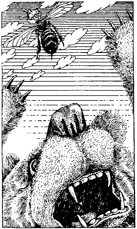 Но бедная Мохнатка! Она вонзила в глаз медведю жало так глубоко, что оно там и засело. Бедняжка вдруг совсем ослабла, свалилась на землю, забилась в траву да незаметно навеки заснула. Но, умирая, не жалела ли она о том, что для спасенья улья себя погубила?