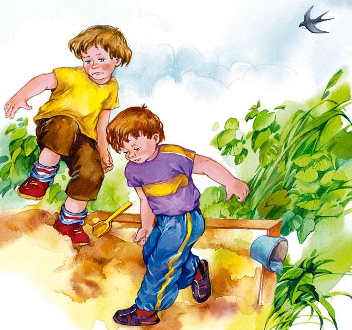 Мальчики очень дружили и как могли помогали друг другу. Витя помогал Славе решать задачи, а Слава следил, чтобы Витя правильно писал слова и не пачкал свои тетради кляксами. Однажды они сильно поспорили.