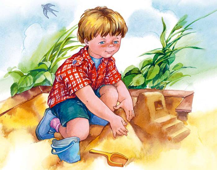 На дворе возвышалась горка красной глины. Сидя на корточках, мальчики рыли в ней замысловатые ходы и строили крепость. И вдруг они заметили в сторонке другого мальчика, который тоже копался в глине, макал в жестянку с водой красные руки и старательно обмазывал стены глиняного дома.